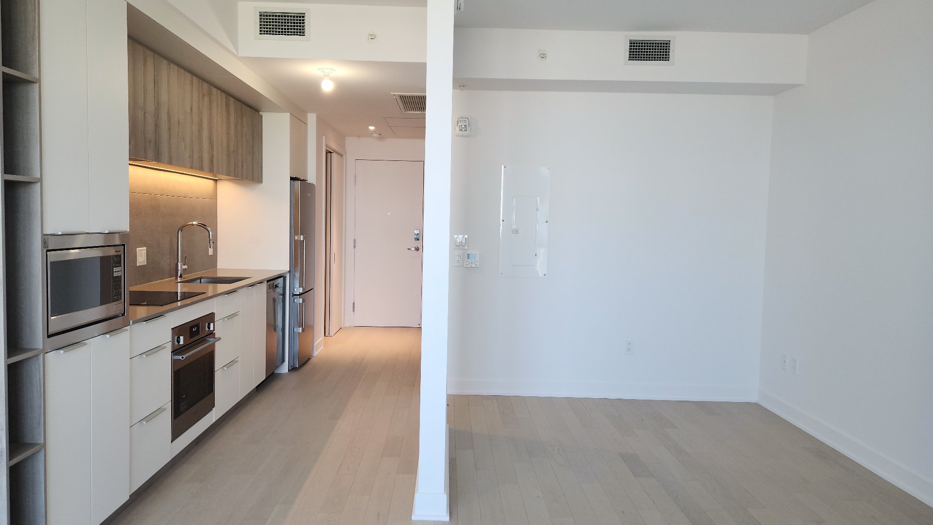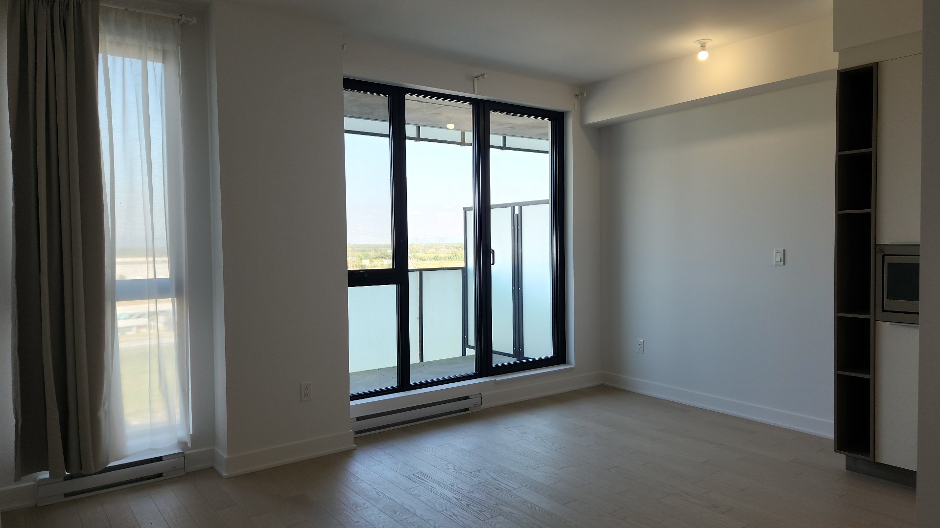 Large high-end studio in Solar Uniquartier ORIA phase 2, Brossard, near Dix30. Just a 5-minute walk from the REM station, this magnificent 9th-floor condo features an open-concept bedroom with breathtaking views. The superb complex offers amenities such as indoor/outdoor pools, gym, community rooms, roof terrace, and panoramic lounge. Only 15 minutes from downtown Montreal, it's opposite Brossard urban park, surrounded by cycle paths and green spaces, and within walking distance to Dix30.