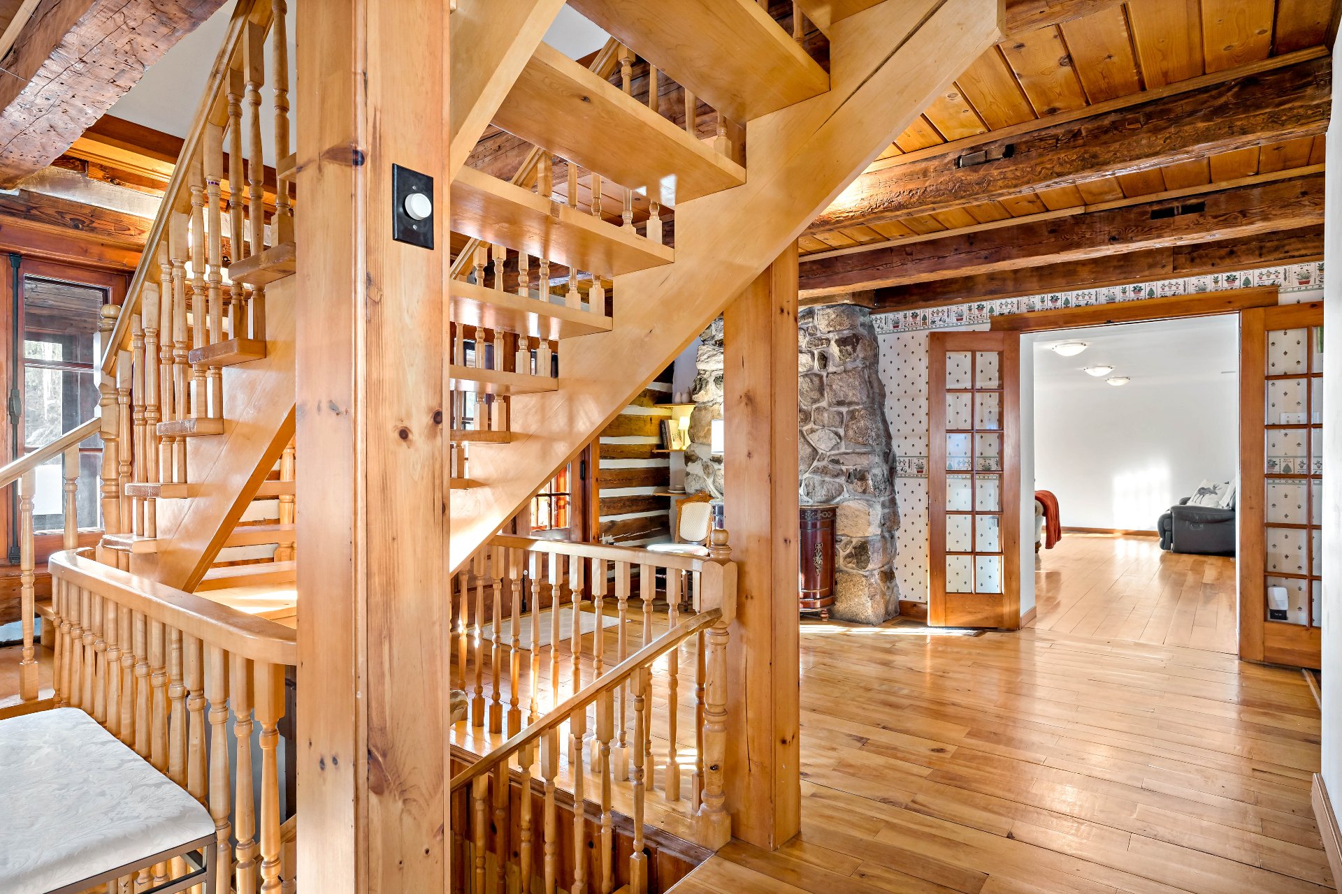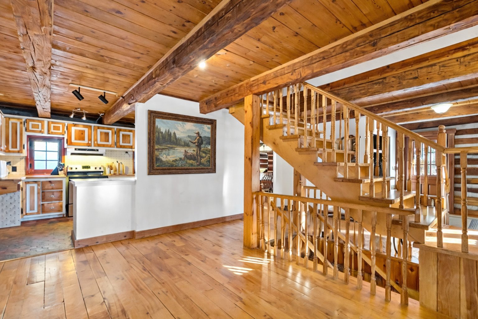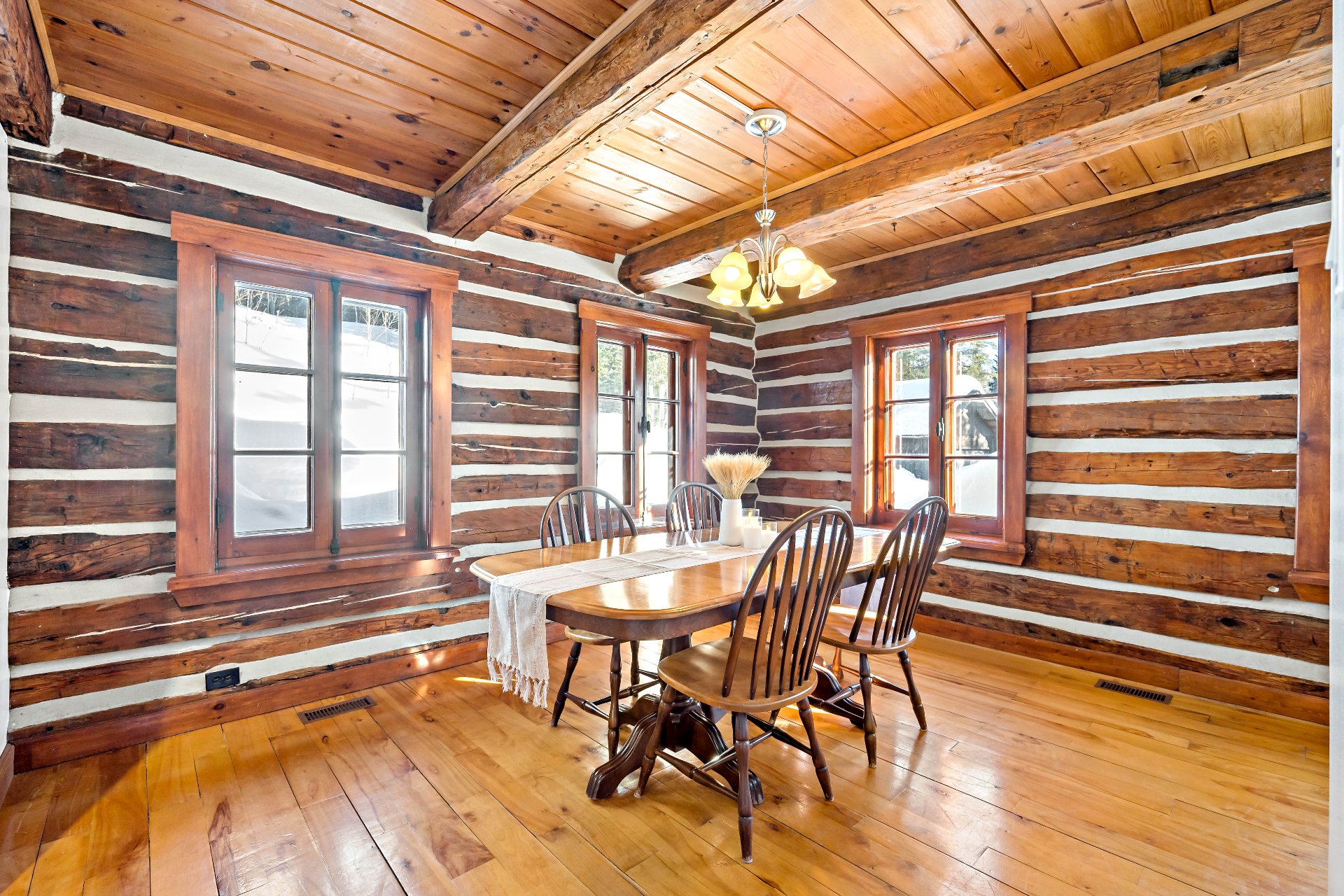 bois rustiques à larges lames, poutres apparentes,