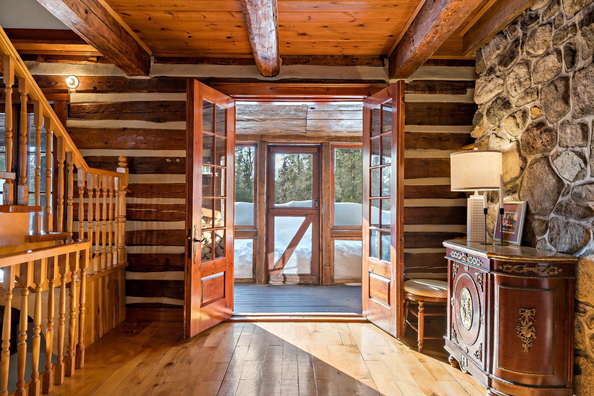 style canadien construite en madriers équarris à la main,