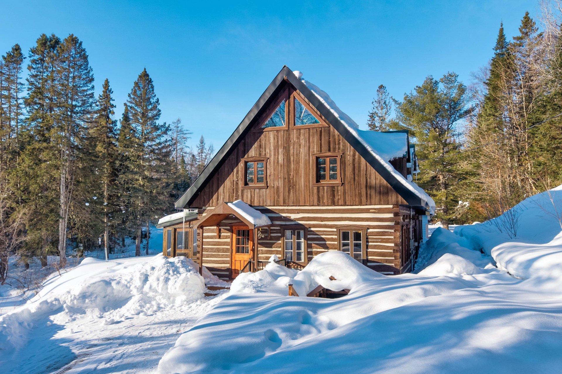 style canadien construite en madriers équarris à la main,