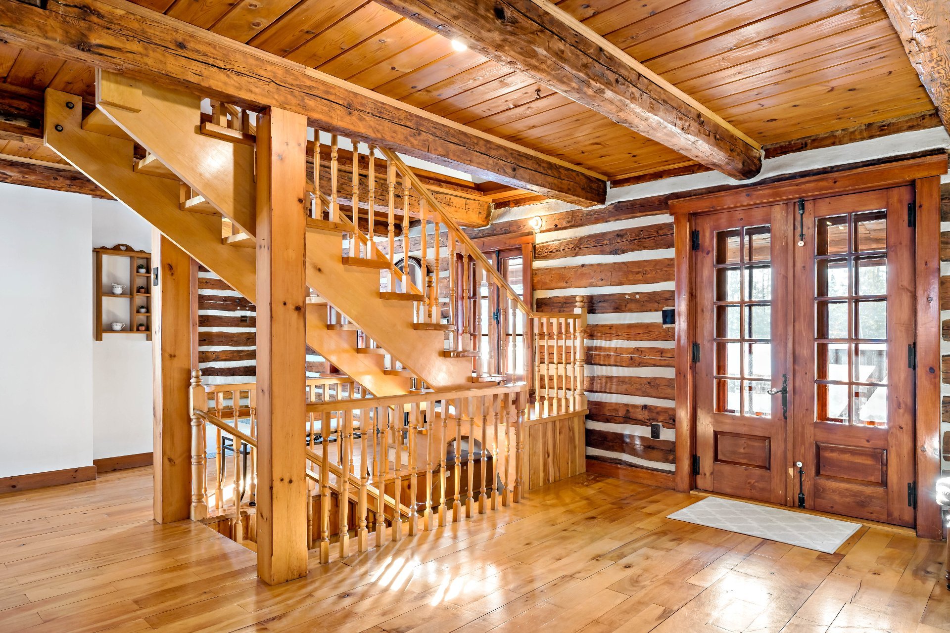bois rustiques à larges lames, poutres apparentes,