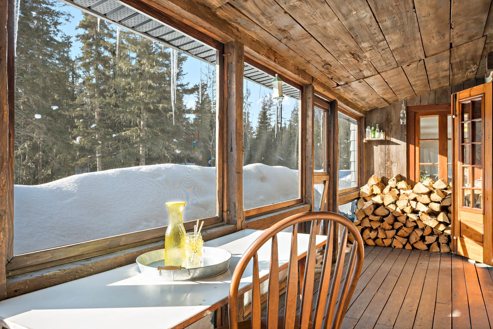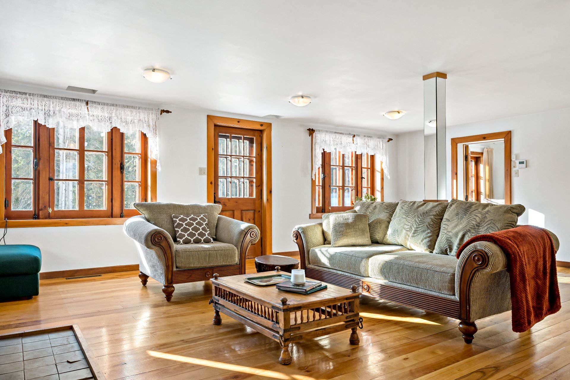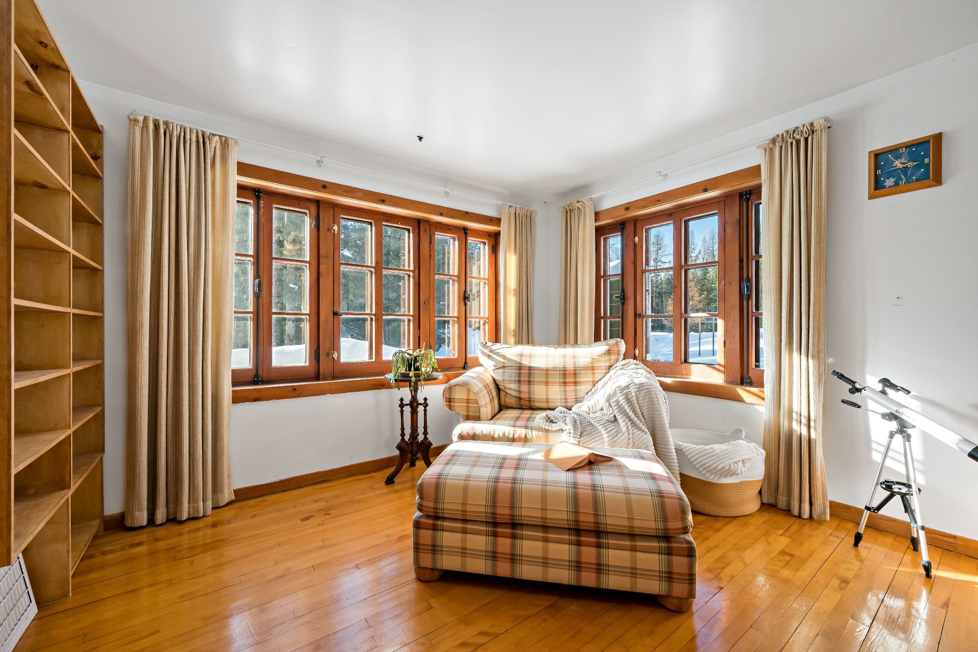 boiseries chaleureuses et fenêtres à crémones. Une
